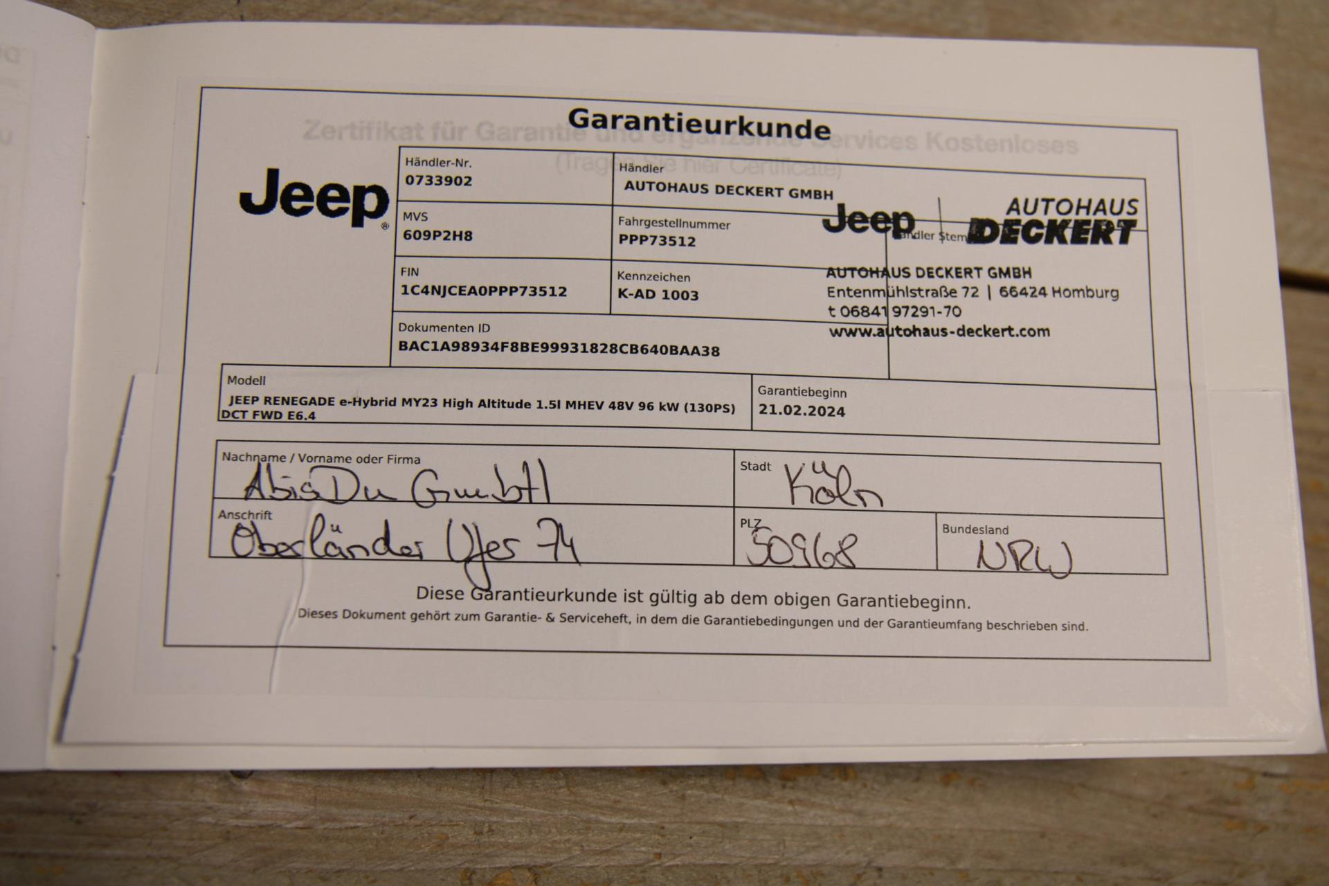 - Onderhoudsboekje aanwezig?