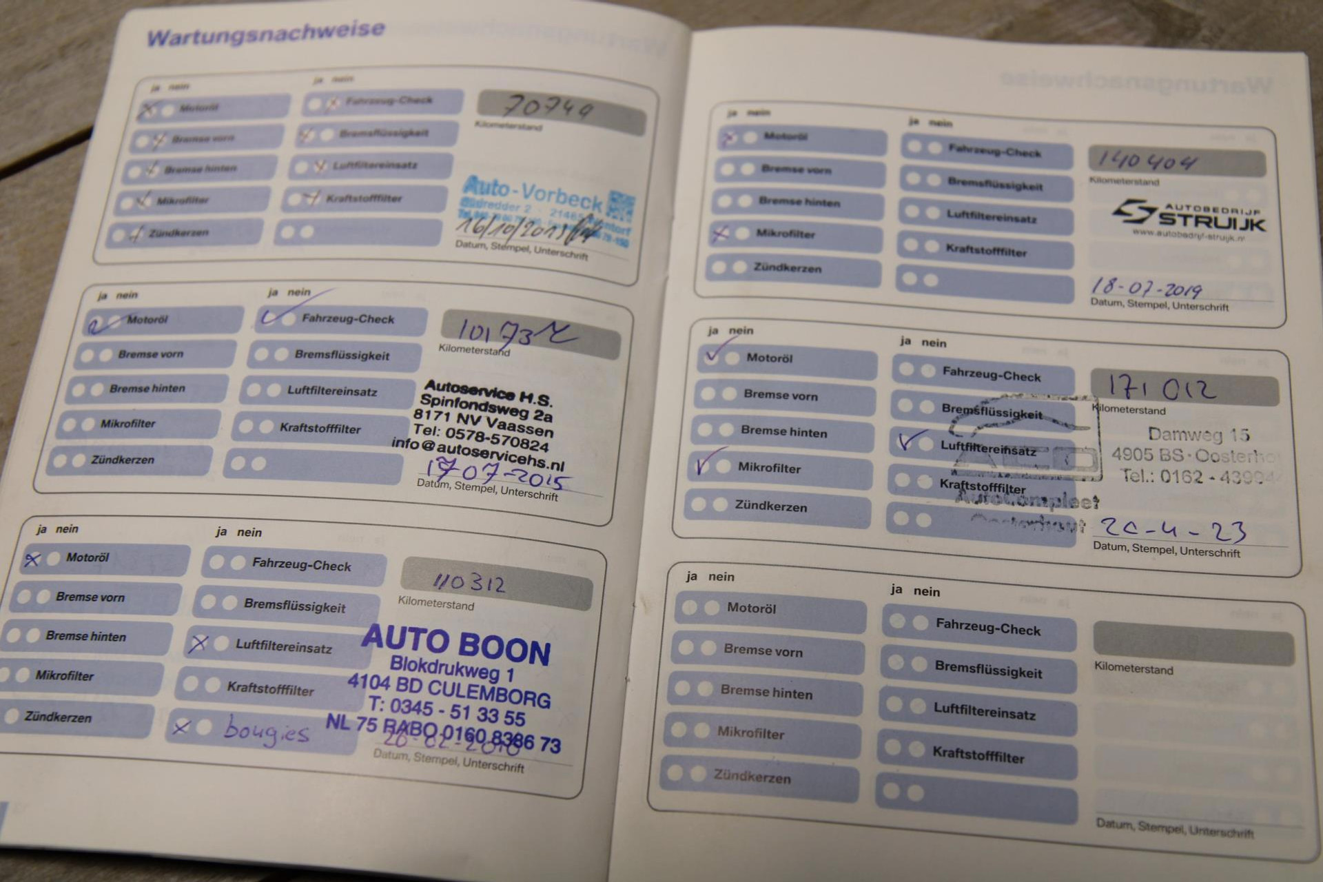 - Onderhoudsboekje aanwezig?