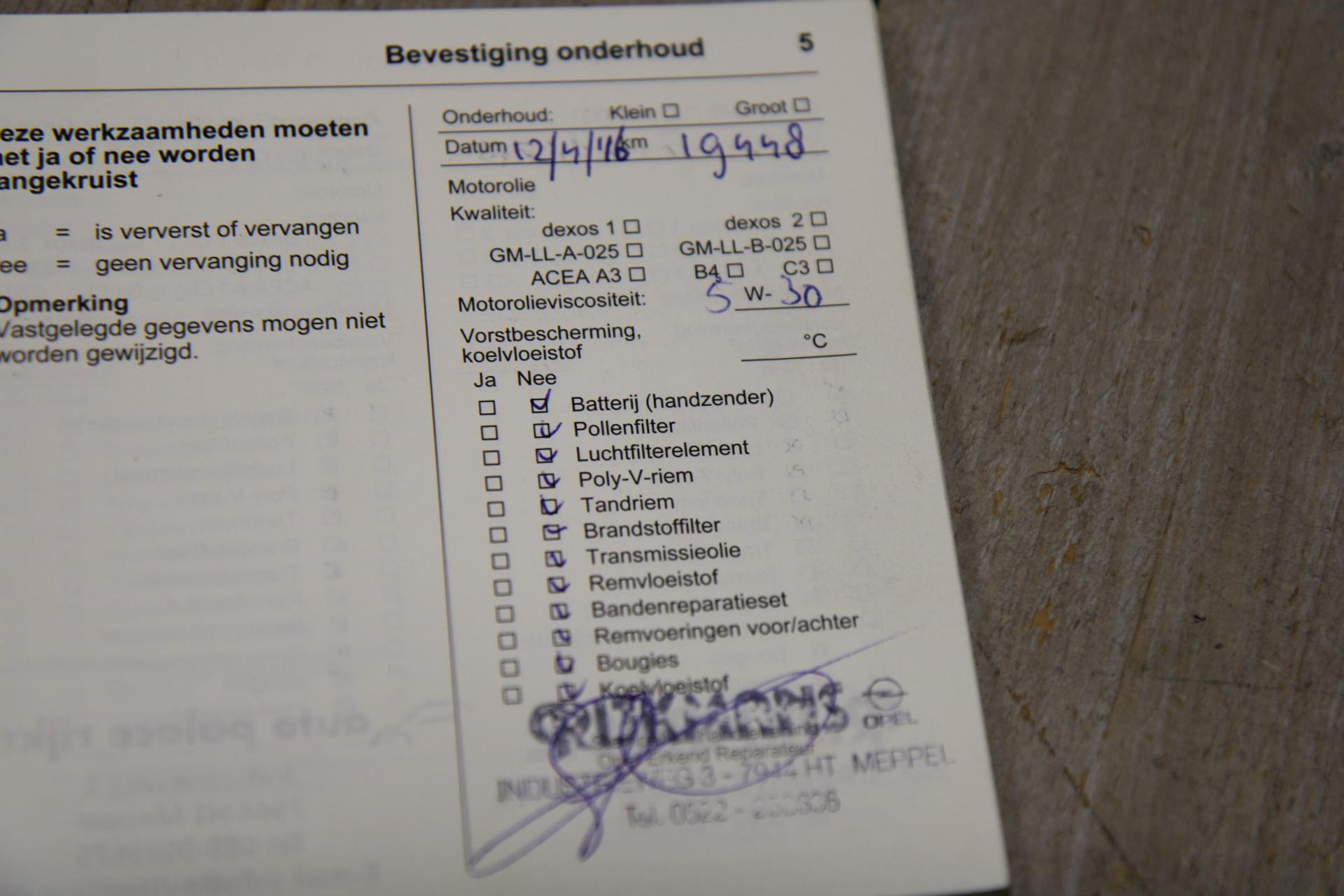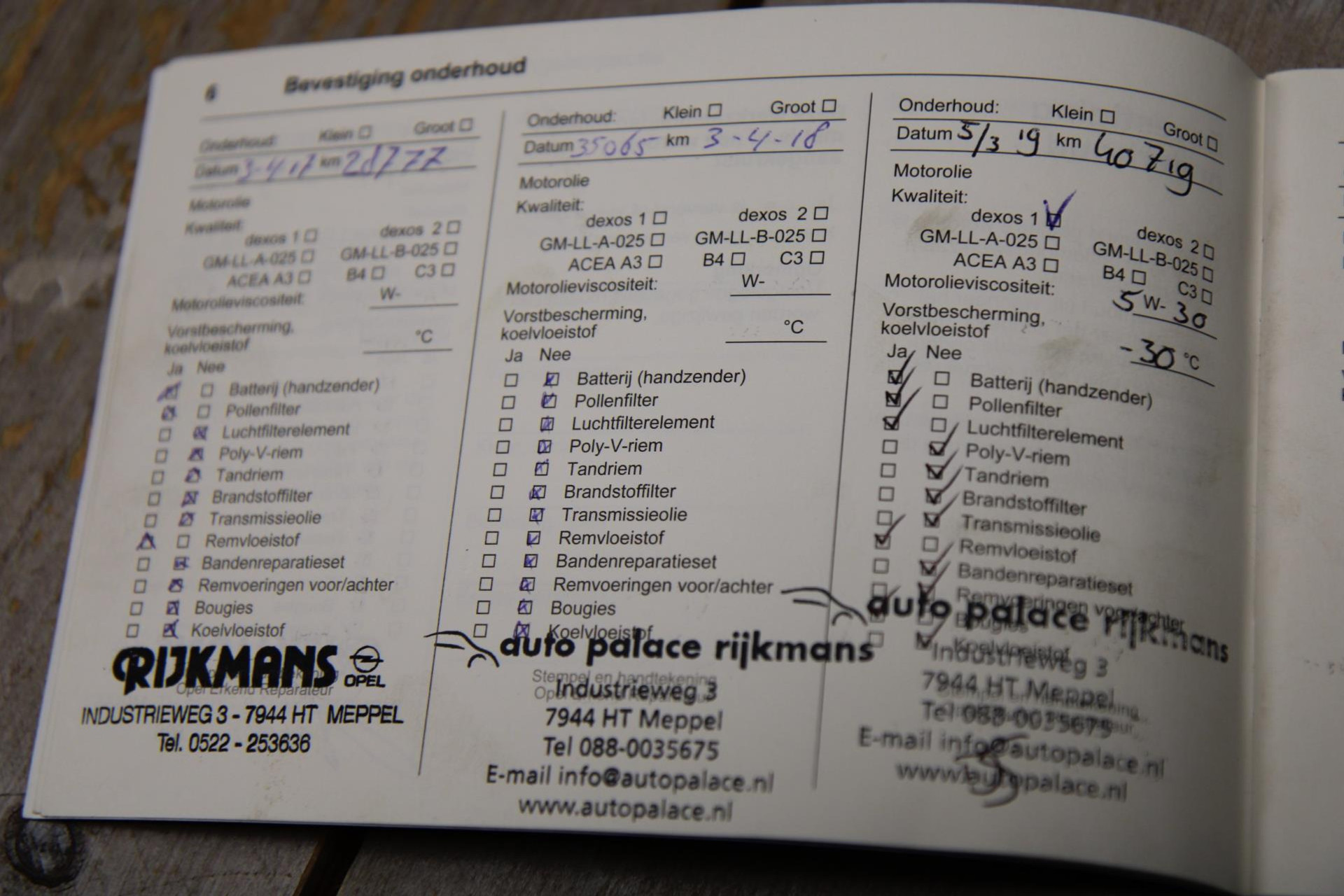 - Onderhoudsboekje aanwezig?