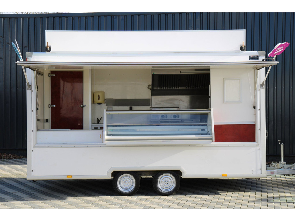 Een nieuwe kost een vermogen tegenwoordig, en deze schrijft bijna niet meer af. En wellicht na 1 seizoen alweer terug verdiend, bekijk de vele foto's op onze eigen site. Prijs is excl. 21% BTW. Je kan hier met meerdere mensen in werken en alles is aanwezig om diversiteit aan te bieden. Gekocht van de bank, en alle inruil is mogelijk. Niet is te gek om in te ruilen van oldtimer tot boot aan toe. Bekijk de vele foto's duidelijke foto's svp. Prijs is excl. 21% BTW en de afmetingen zijn: Lengte 440cm zonder triangel, Breedte 221cm en de Hoogte is vanaf de grond 268cm zonder reclamebord en blazer. Met een tandemasser kan iedereen rijden en ligt rustig achter het voertuig en met een schamelwagen valt niet achteruit te rijden.