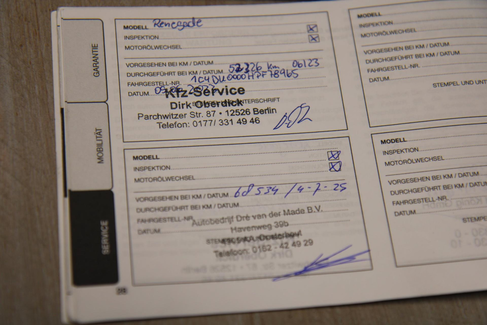 - Onderhoudsboekje aanwezig?