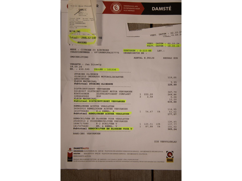 Zo goed als deze C3 Aircross is onderhouden zo zien wij het graag! Vorig jaar nog voorzien van een nieuwe Dsitributieriem, koppeling+Vliegwiel en alle remblokken zijn toen vervangen. Dat is pas fijn rijden, want kijkt u maar eens naar de totale kosten welke de vorige eigenaar heeft gemaakt in het laatste jaar van zijn bezit, voor ruim €4100,- aan onderhoud is er toen uitgevoerd en dit eigenlijk aan alle slijtage onderdelen. Dus de te verwachten reguliere onderhoudskosten zijn gewoon laag bij een goed onderhouden exemplaar zoals deze. Instappen en rijden dus, wie eerst??