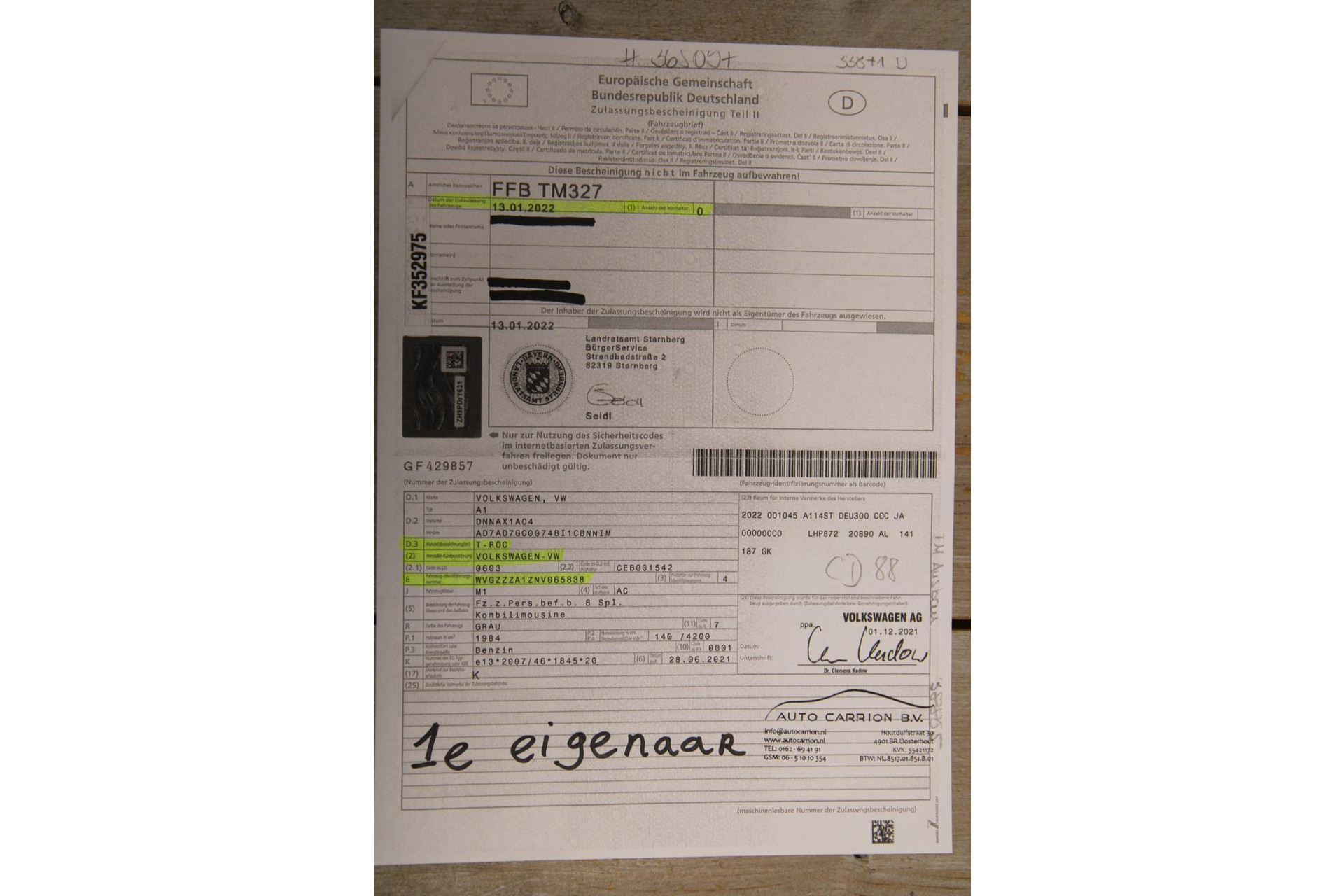 Voor de vrijwaring van uw auto hebben wij deel II van het papieren kentekenbewijs nodig. Of van voertuigen die na 2014 tenaamgesteld zijn: de 9-cijferige tenaamstellingcode en het kentekenpasje. Met deze documenten kunnen wij de auto vrijwaren en dus overschrijven.