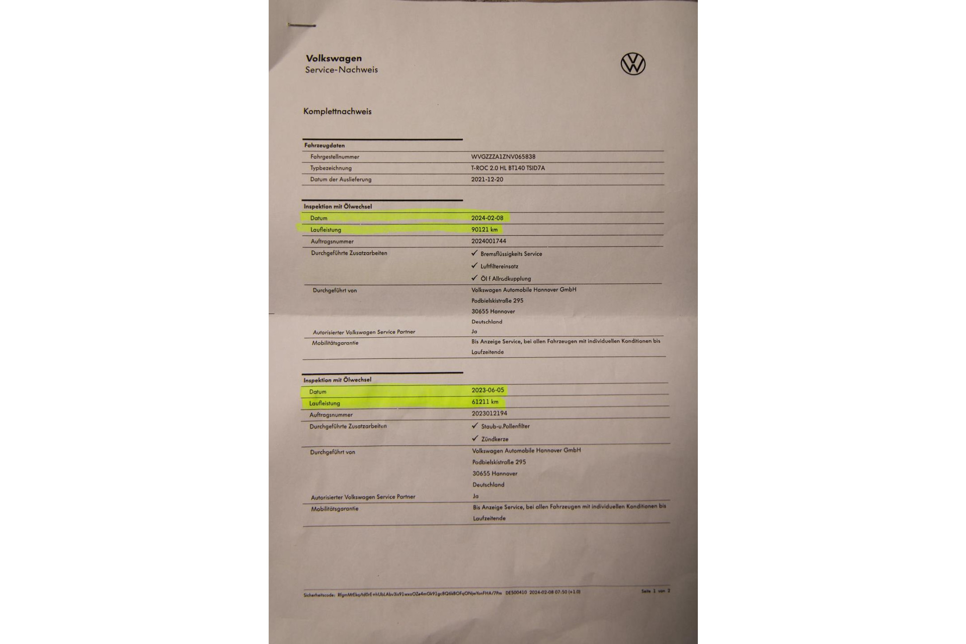 Onderhoudshistorie