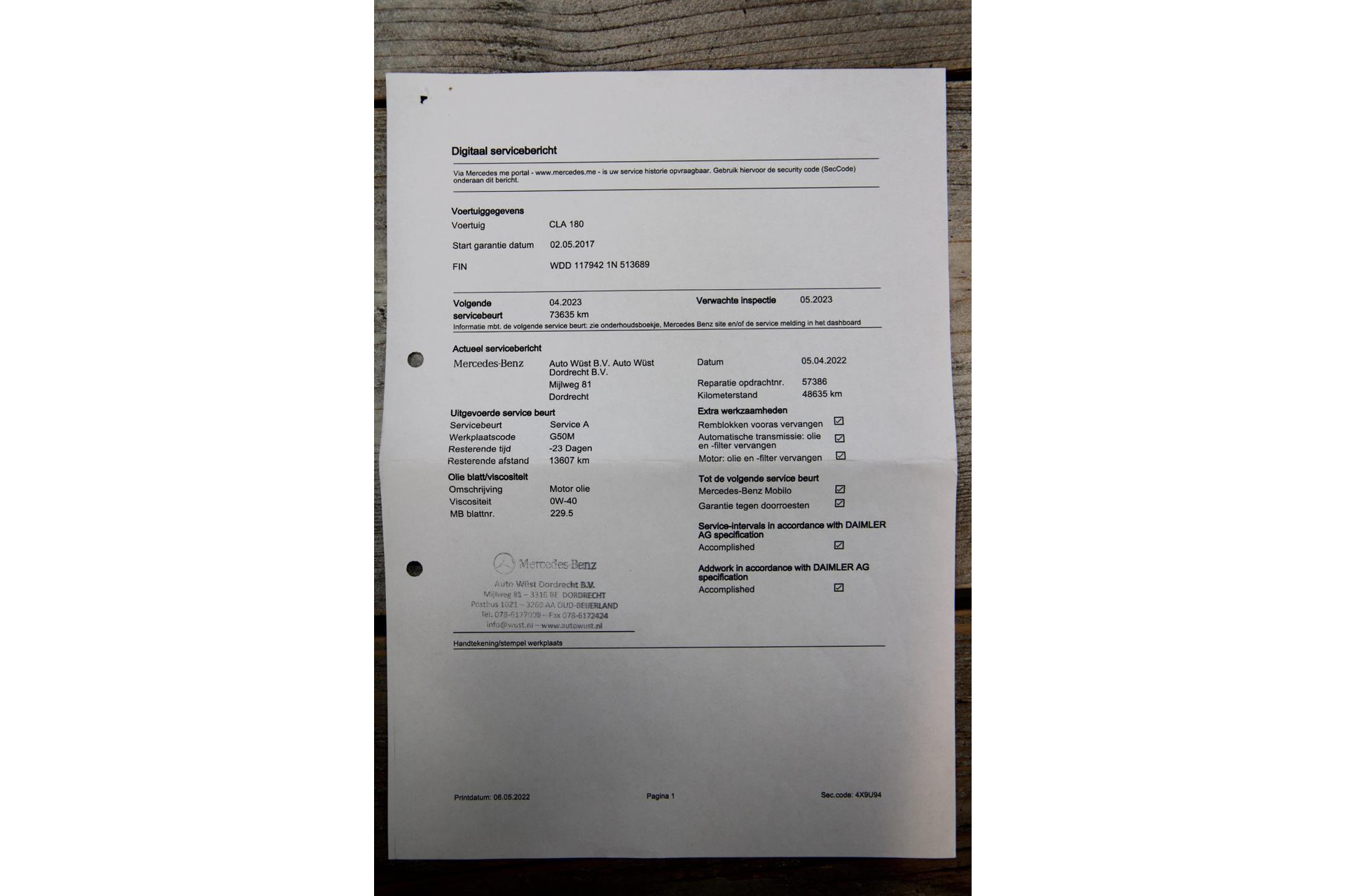 - Onderhoudsboekje aanwezig?