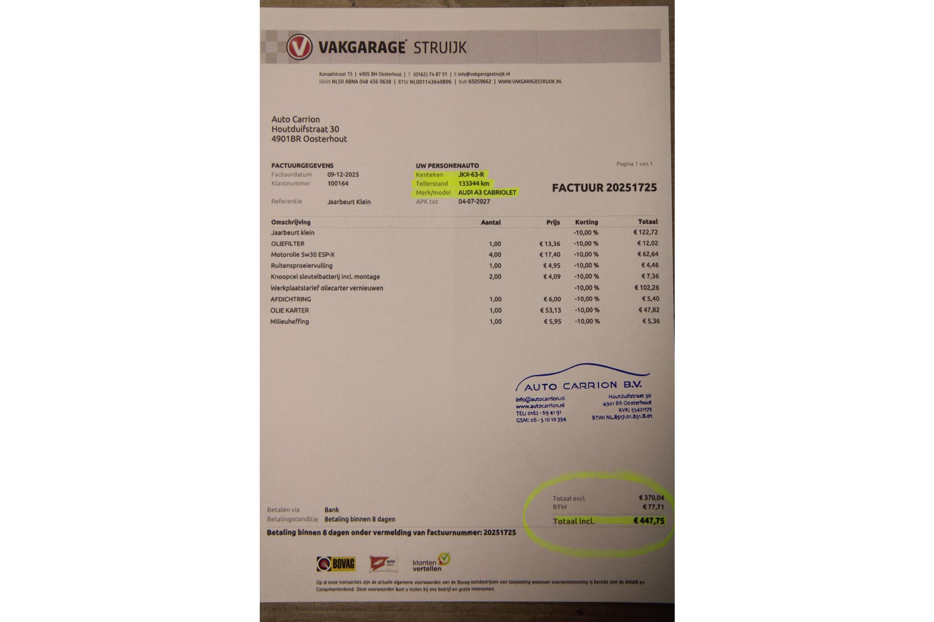 - Onderhoudsboekje aanwezig?