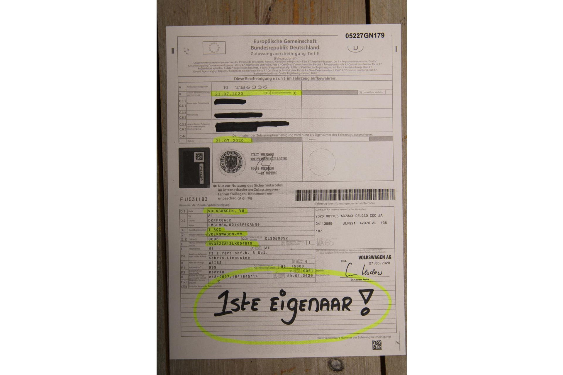 Voor de vrijwaring van uw auto hebben wij deel II van het papieren kentekenbewijs nodig, of van voertuigen die na 2014 tenaamgesteld zijn: de 9-cijferige tenaamstellingcode en het kentekenpasje. Met deze documenten kunnen wij de auto overschrijven.