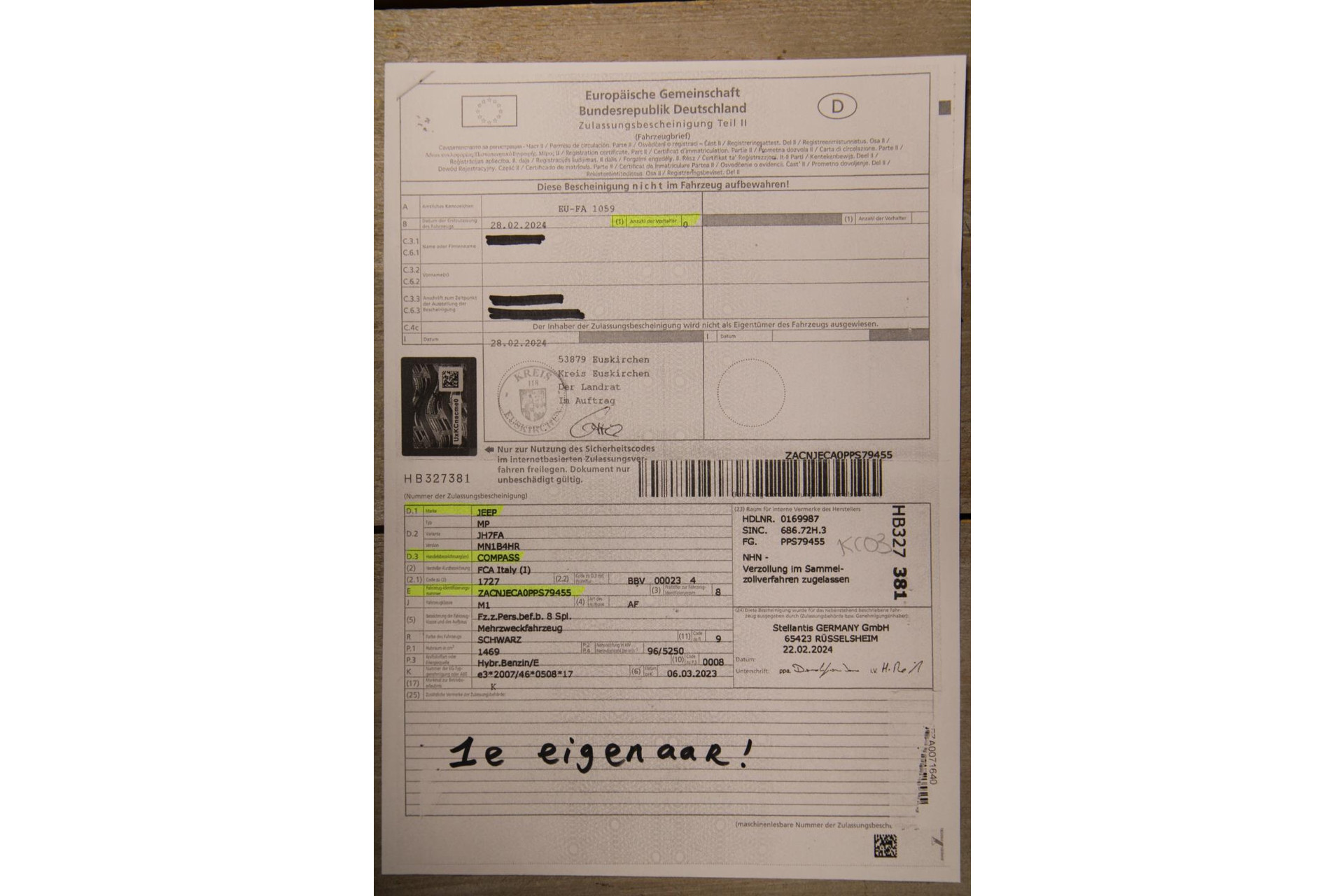 Voor de vrijwaring van uw auto hebben wij deel II van het papieren kentekenbewijs nodig, of van voertuigen die na 2014 tenaamgesteld zijn: de 9-cijferige tenaamstellingcode en het kentekenpasje. Met deze documenten kunnen wij de auto overschrijven.
