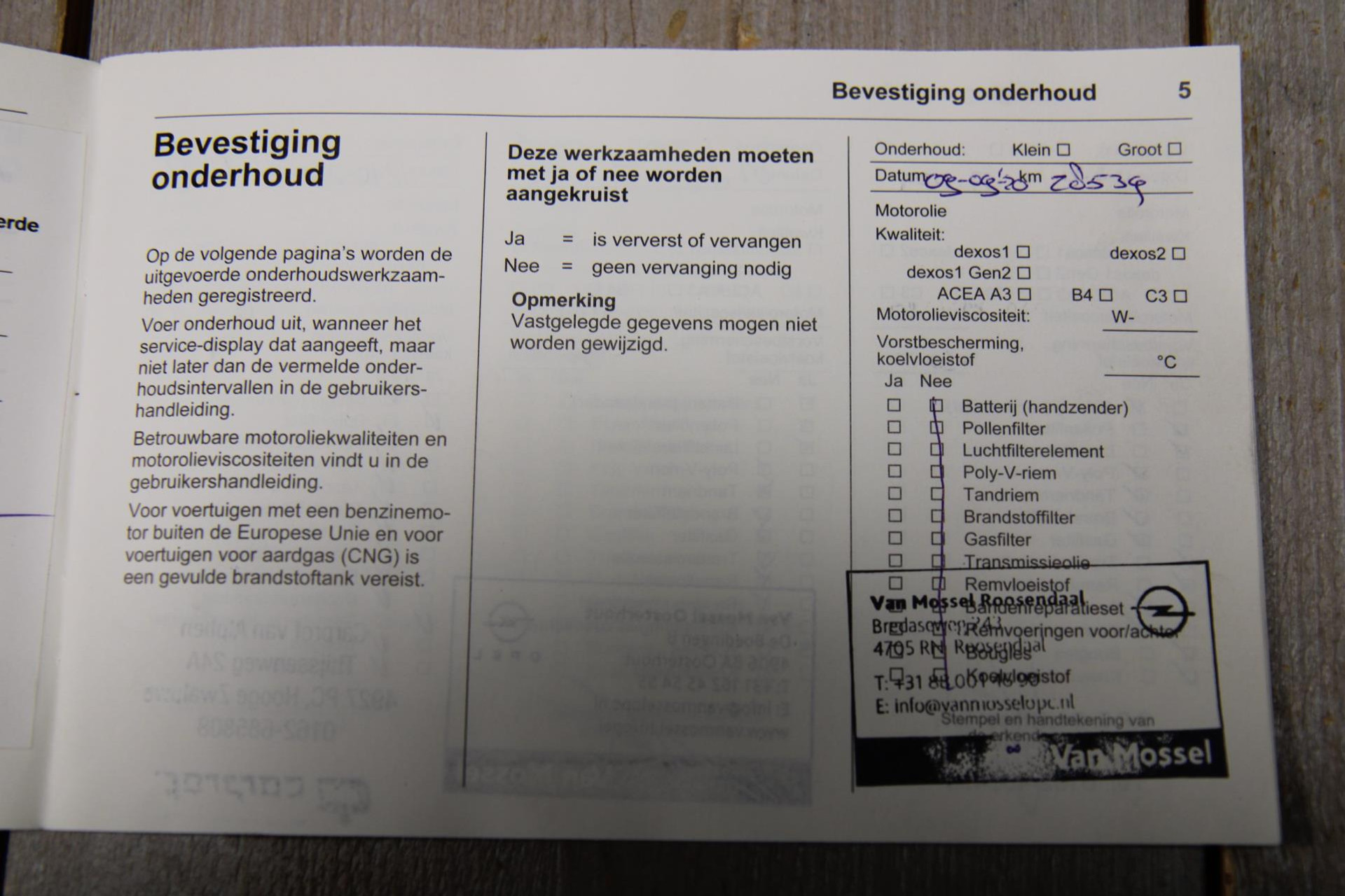 - Onderhoudsboekje aanwezig?