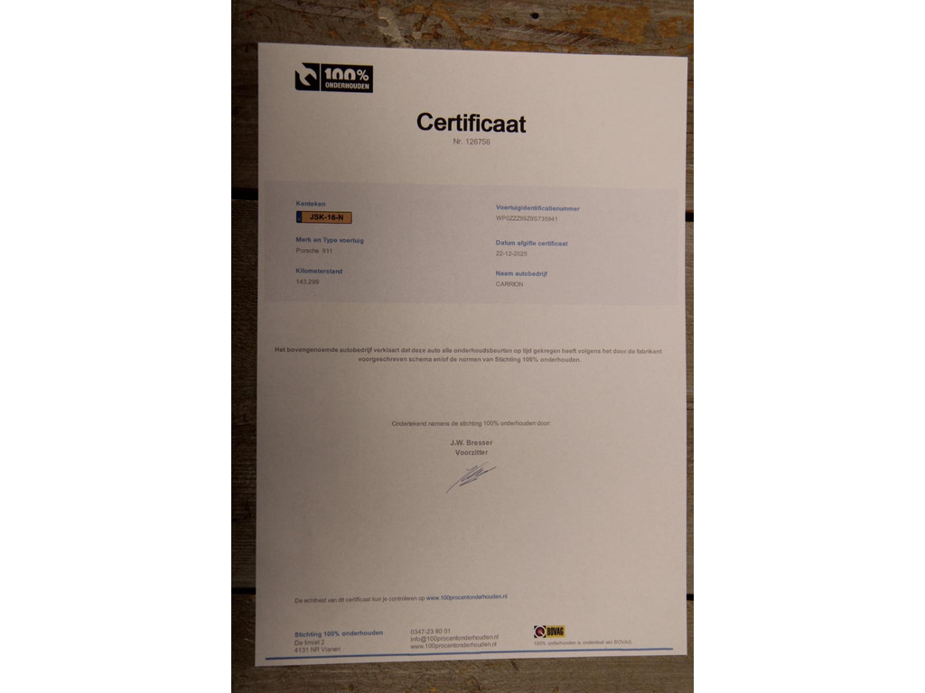 De meeste 911's zijn niet dealer onderhouden en dat wenst een Porsche koper zich juist wel. Niet van die verhalen van bij een specialist onderhouden of lokale garage, dat werkt gewoon waarde verminderend en meer niet. Als je voor een prestigemodel zoals de 911 gaat, zorg dan dat je een gedocumenteerd exemplaar zoals deze gaat. En hier staat ze dan ineens! Zo open en transparant als wij adverteren, doet helaas niemand. We laten alles zien zodat u alles op voorhand kan controleren, en daar laten andere aanbieders verstek gaan. Bekijk alvast deze foto's voor een juiste impressie of kom langs in onze showroom, de koffie staat klaar. Iedere aankoopkeuring is toegestaan en op locatie beschikken wij over een brug voor eventuele inspectie onder het voertuig. Het chassisnummer van deze Porsche is gefotografeerd, zie onze duidelijke foto's, zodat u eventueel al informatie kan opzoeken/opvragen alvorens het plannen van een bezichtiging in onze showroom.