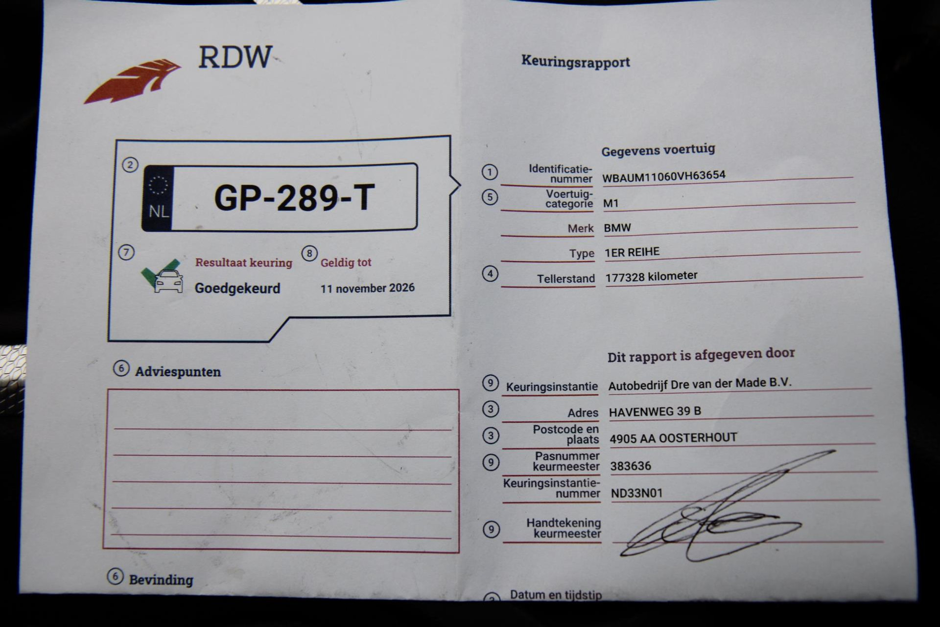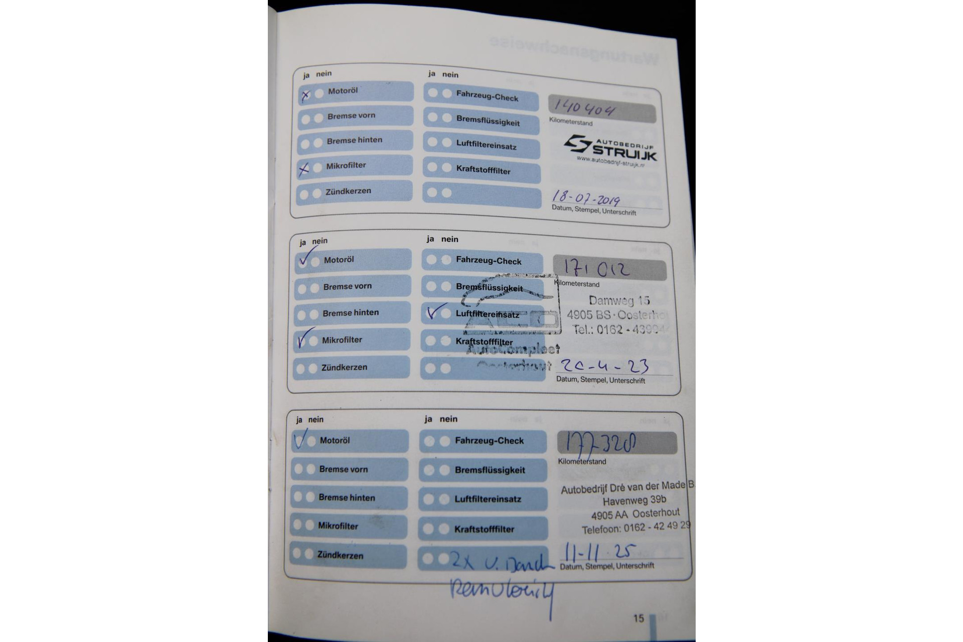 - Onderhoudsboekje aanwezig?