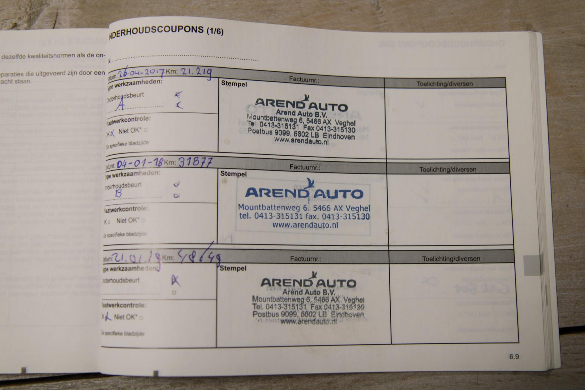 - Onderhoudsboekje aanwezig?