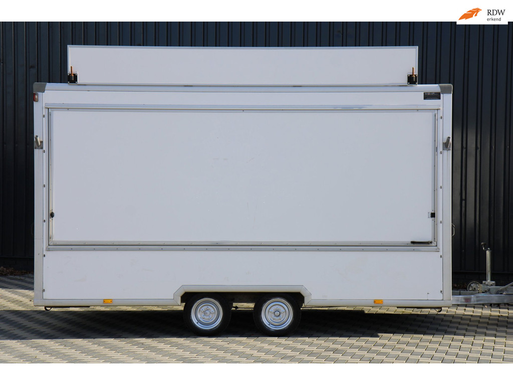 Een nieuwe kost een vermogen tegenwoordig, en deze schrijft bijna niet meer af. En wellicht na 1 seizoen alweer terug verdiend, bekijk de vele foto's op onze eigen site. Prijs is excl. 21% BTW. Je kan hier met meerdere mensen in werken en alles is aanwezig om diversiteit aan te bieden. Gekocht van de bank, en alle inruil is mogelijk. Niet is te gek om in te ruilen van oldtimer tot boot aan toe. Bekijk de vele foto's duidelijke foto's svp. Prijs is excl. 21% BTW en de afmetingen zijn: Lengte 440cm zonder triangel, Breedte 221cm en de Hoogte is vanaf de grond 268cm zonder reclamebord en blazer. Met een tandemasser kan iedereen rijden en ligt rustig achter het voertuig en met een schamelwagen valt niet achteruit te rijden.
